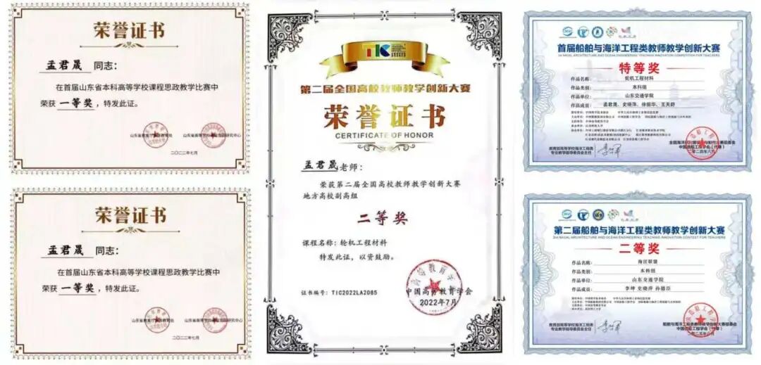 学院在教学竞赛领域屡创佳绩,是长期积累和厚积薄发的成果。近年来,学院教师在全国及省级各类高水平教学竞赛中表现突出。例如,孟君晟老师在首届船舶与海洋工程类教师教学创新大赛中荣获特等奖,李坤老师在第二届同类赛事中获得二等奖。此外,学院教师还曾荣获全国高校教师教学创新大赛二等奖、山东省本科高等学校课程思政教学比赛一等奖、山东省高校青年教师教学比赛一等奖等多个重要奖项。这些荣誉不仅是对教师个人教学能力的肯定,更是学院持续深化教学改革、强化师资队伍建设、聚焦立德树人根本任务的集中体现,为培养船舶与海洋工程领域高素质应用型人才奠定了坚实基础。