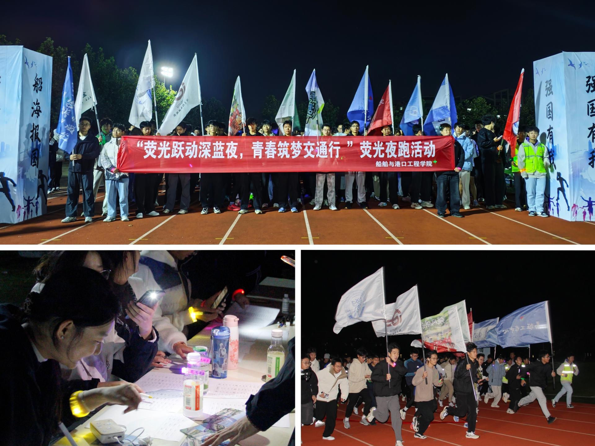 荧光夜跑活动助同学们强健体魄,在运动中既增强团队情谊与凝聚力,又丰富课余生活、传递健康理念,为交通强国梦注入青春力量。