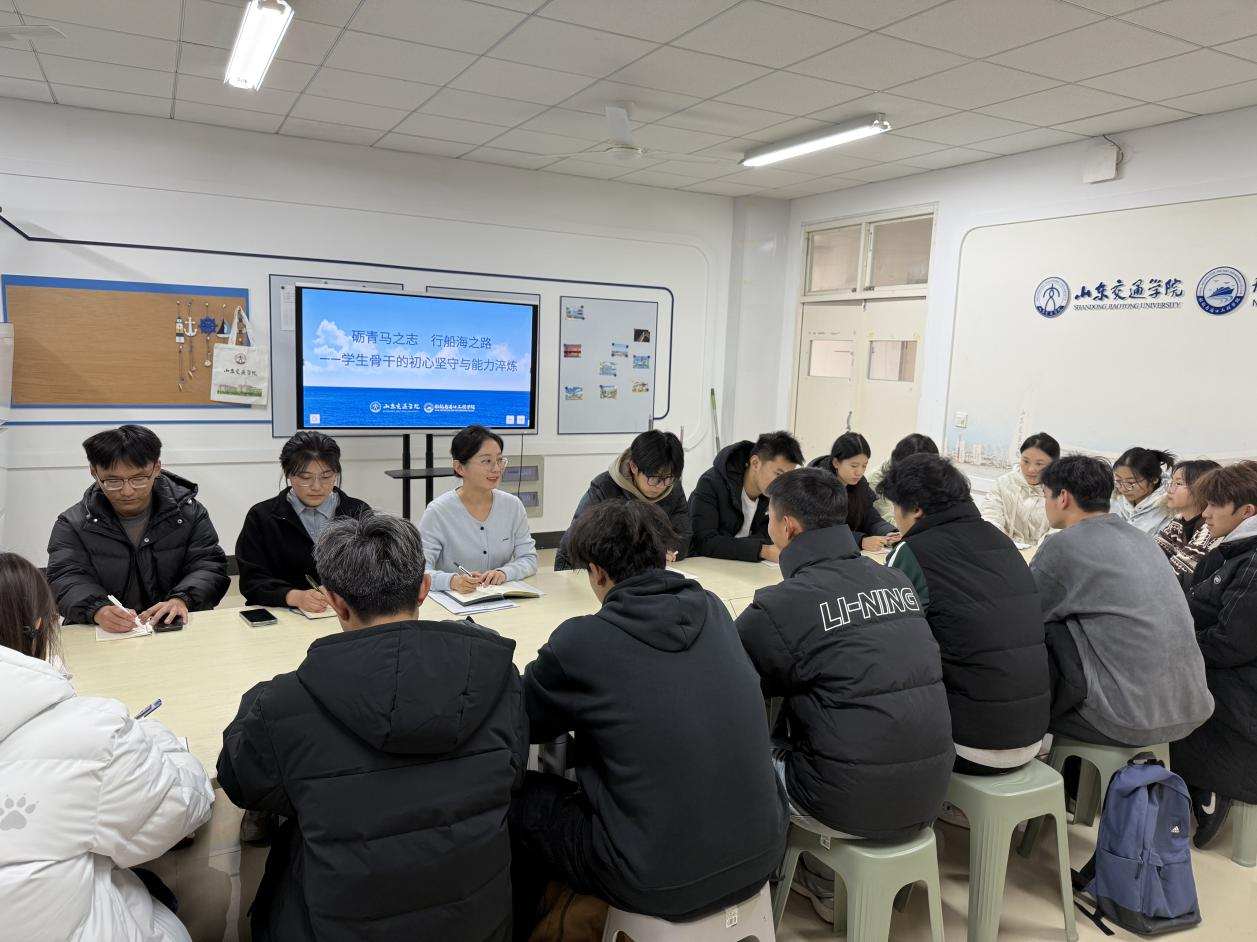 12月10日,学院团委书记丛景妤以“砺青马之志,行船海之路—学生骨干的初心坚守与能力淬炼”为主题,为学院青马班学员讲授主题团课。