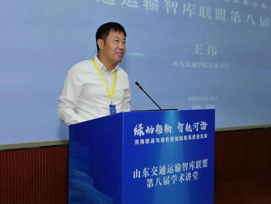王伟在致辞中回顾了山东交通学院69年来“因交通而生、应交通而兴、为交通而强”的办学历程,介绍了学校在智慧交通、绿色交通等领域形成的鲜明特色与丰硕成果。他表示,学校将充分发挥交通类高校的学科与人才优势,持续聚焦绿色智能船舶与河海联运关键技术,助力行业转型升级与山东交通强省建设。