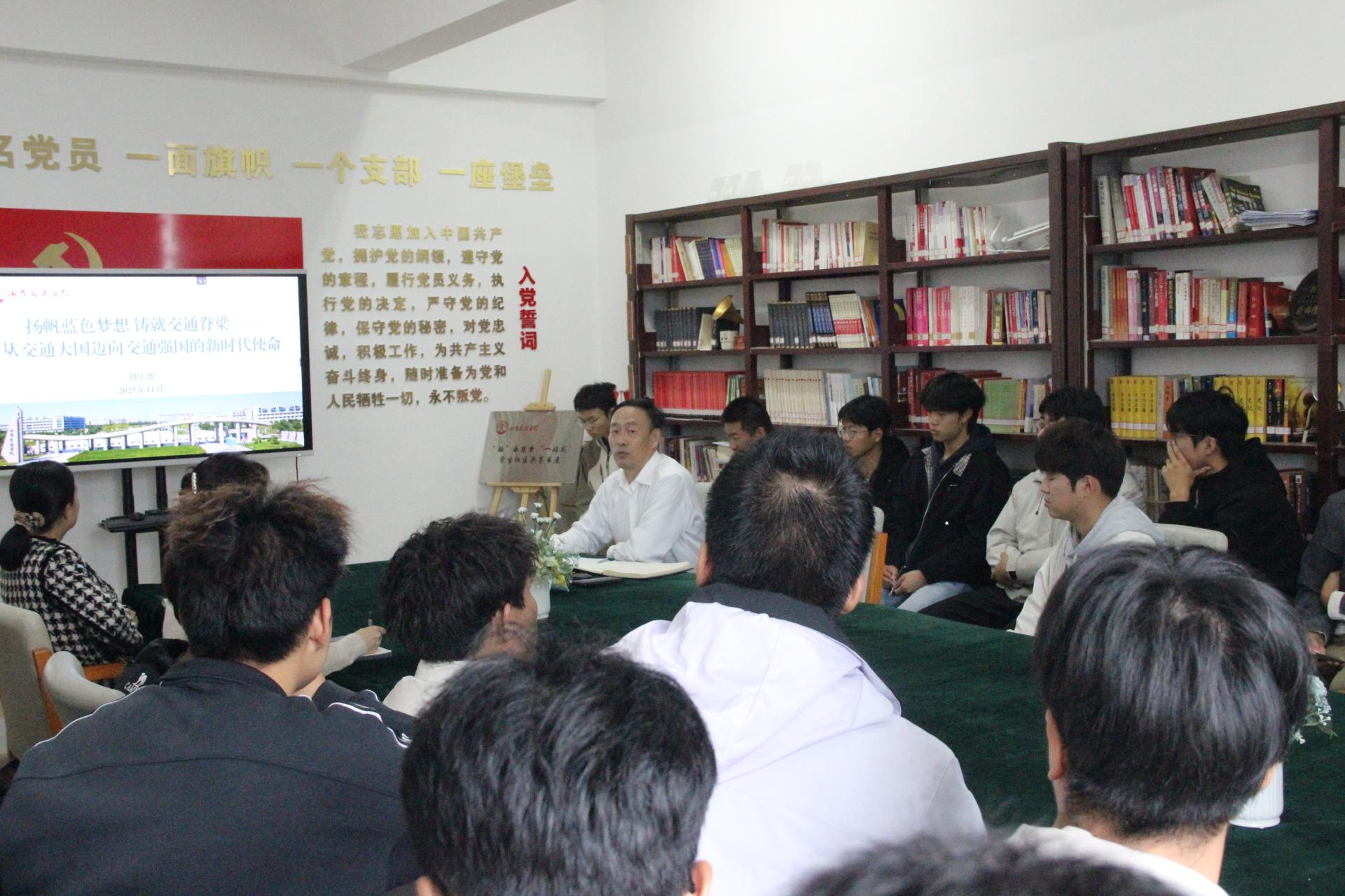 11月6日上午,学校党委委员、党委统战部部长刘庆波在威海校区“船”承筑梦“一站式”学生社区,以《扬帆蓝色梦想 铸就交通脊梁》为题,为船舶251班学生讲授思政课。